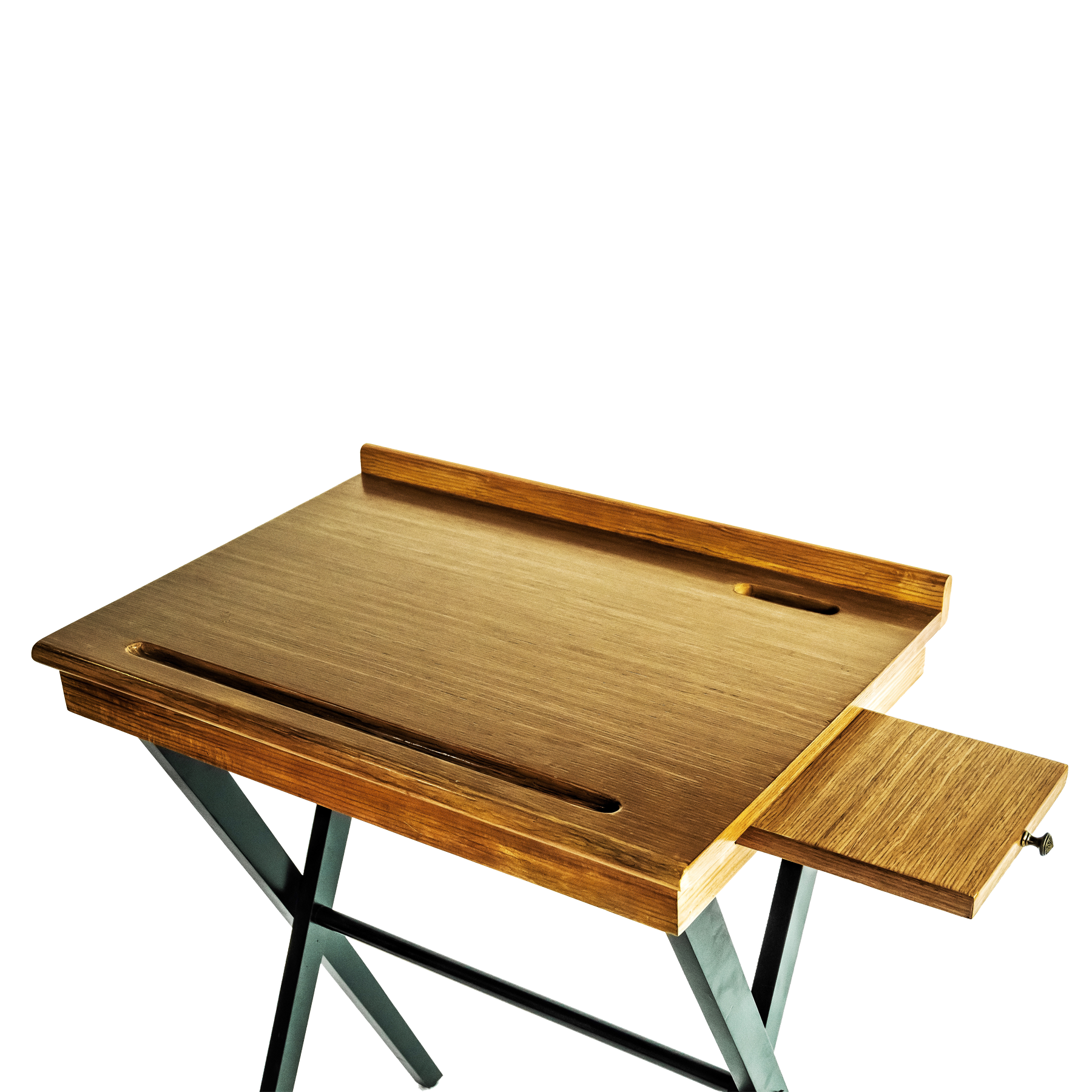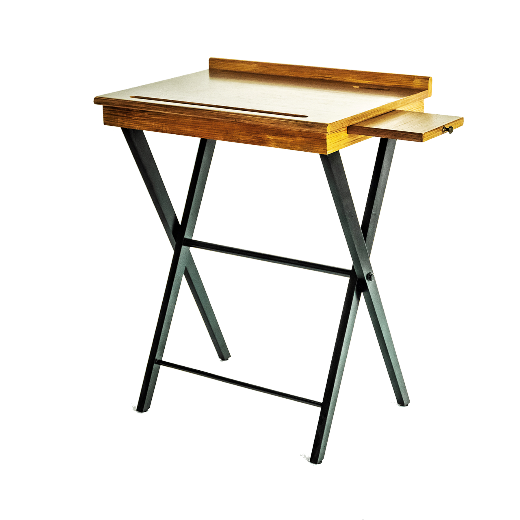 Walnut natural finish with black painted base.