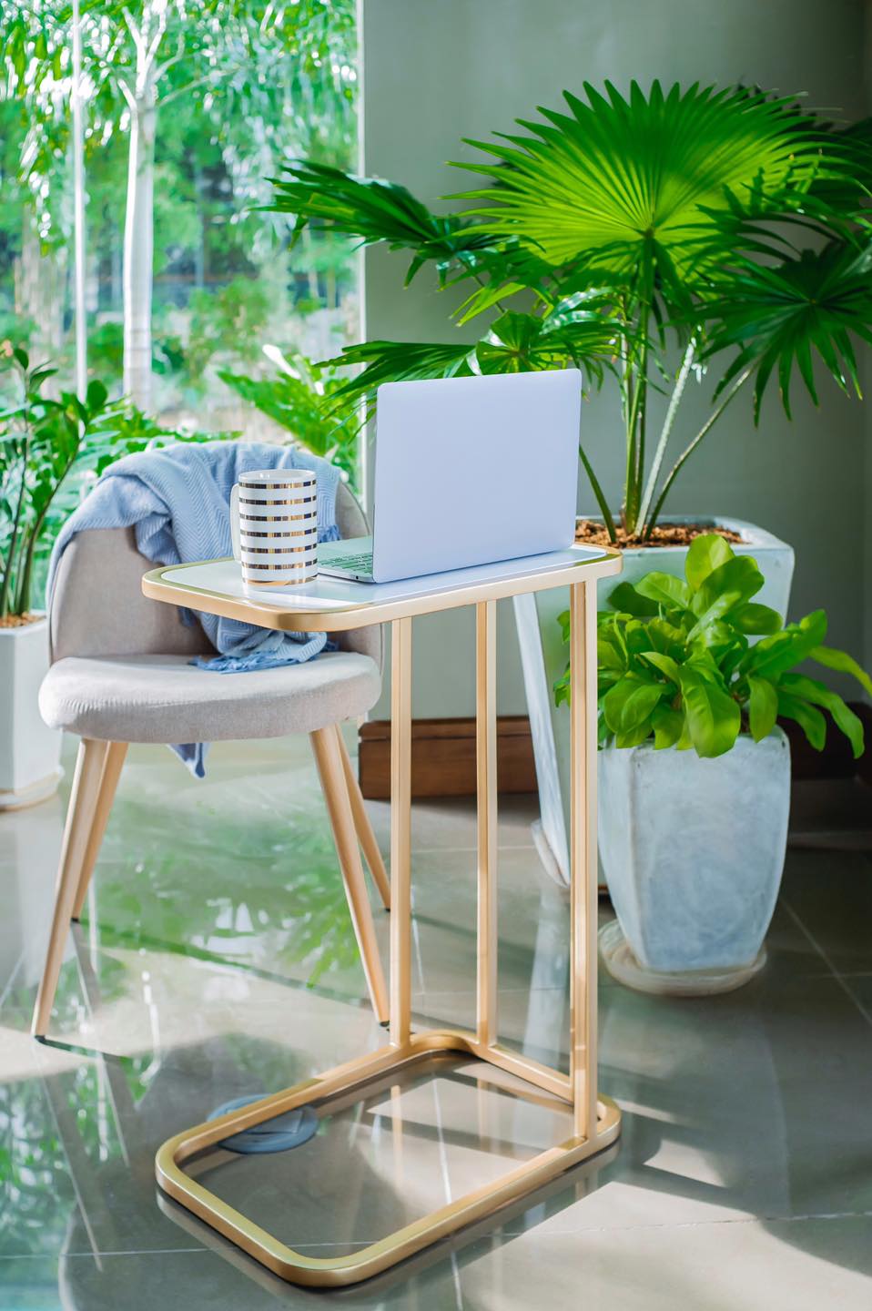 Pearl White Top with Matte Gold Powder Coated Metal Base