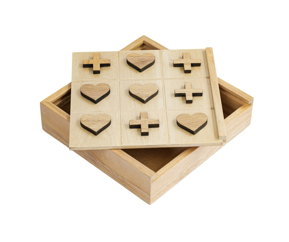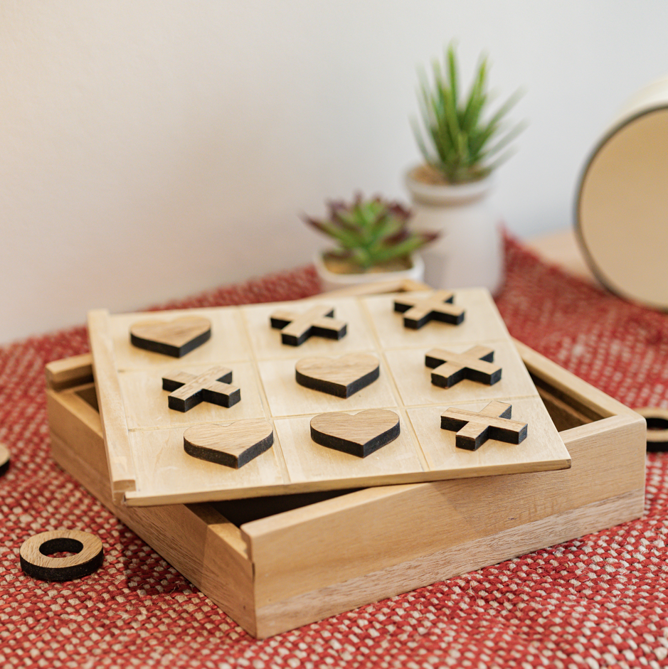 Add a romantic twist to your game night with our heart-adorned wooden tic-tac-toe set - a fun and romantic way to compete with your special someone.