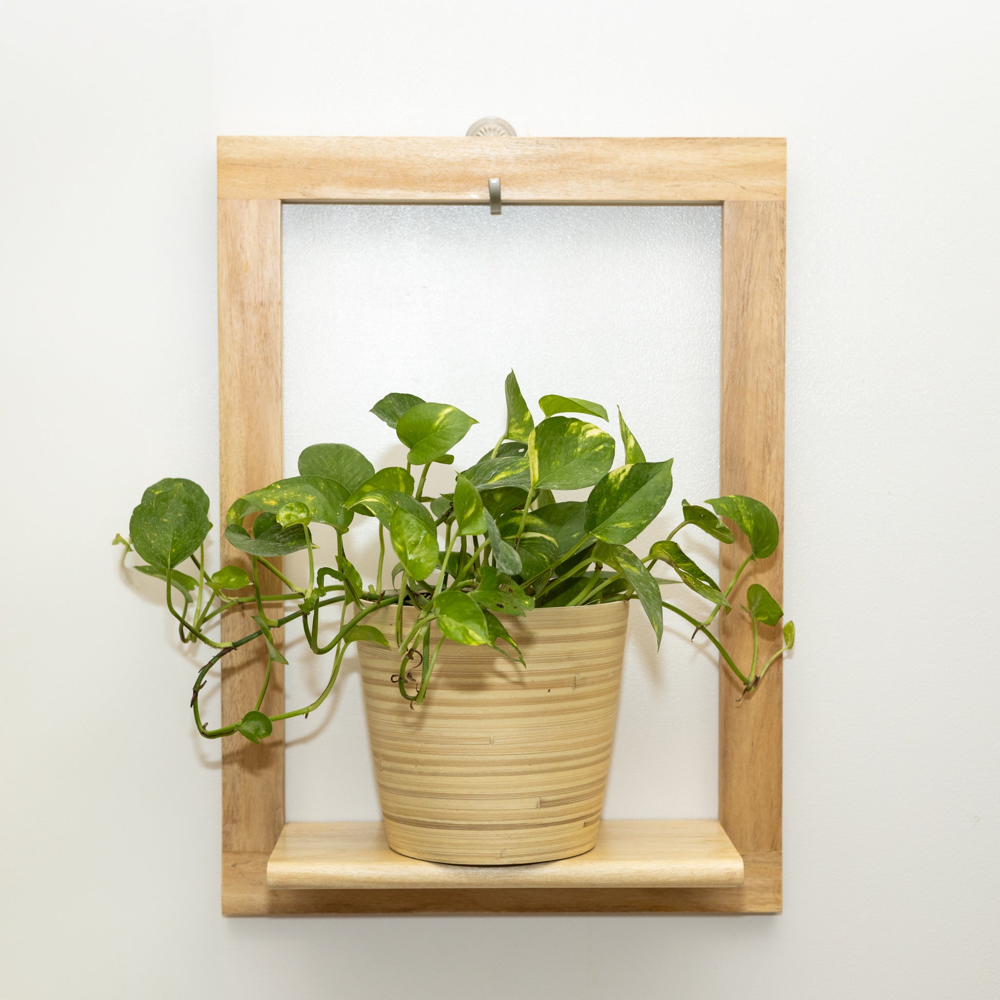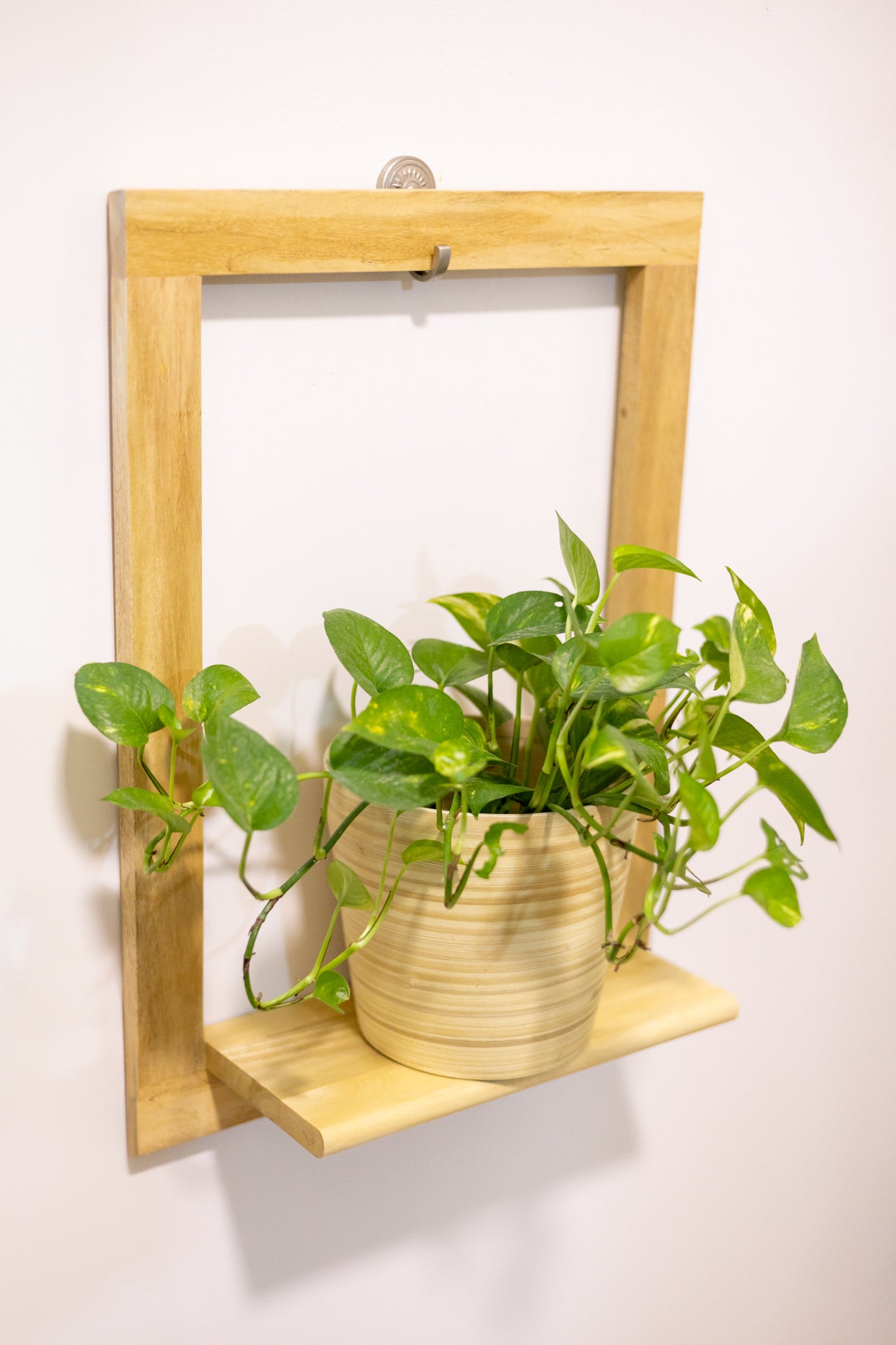 - A functional frame that can be used as a shelf for plants, books, and other decor.