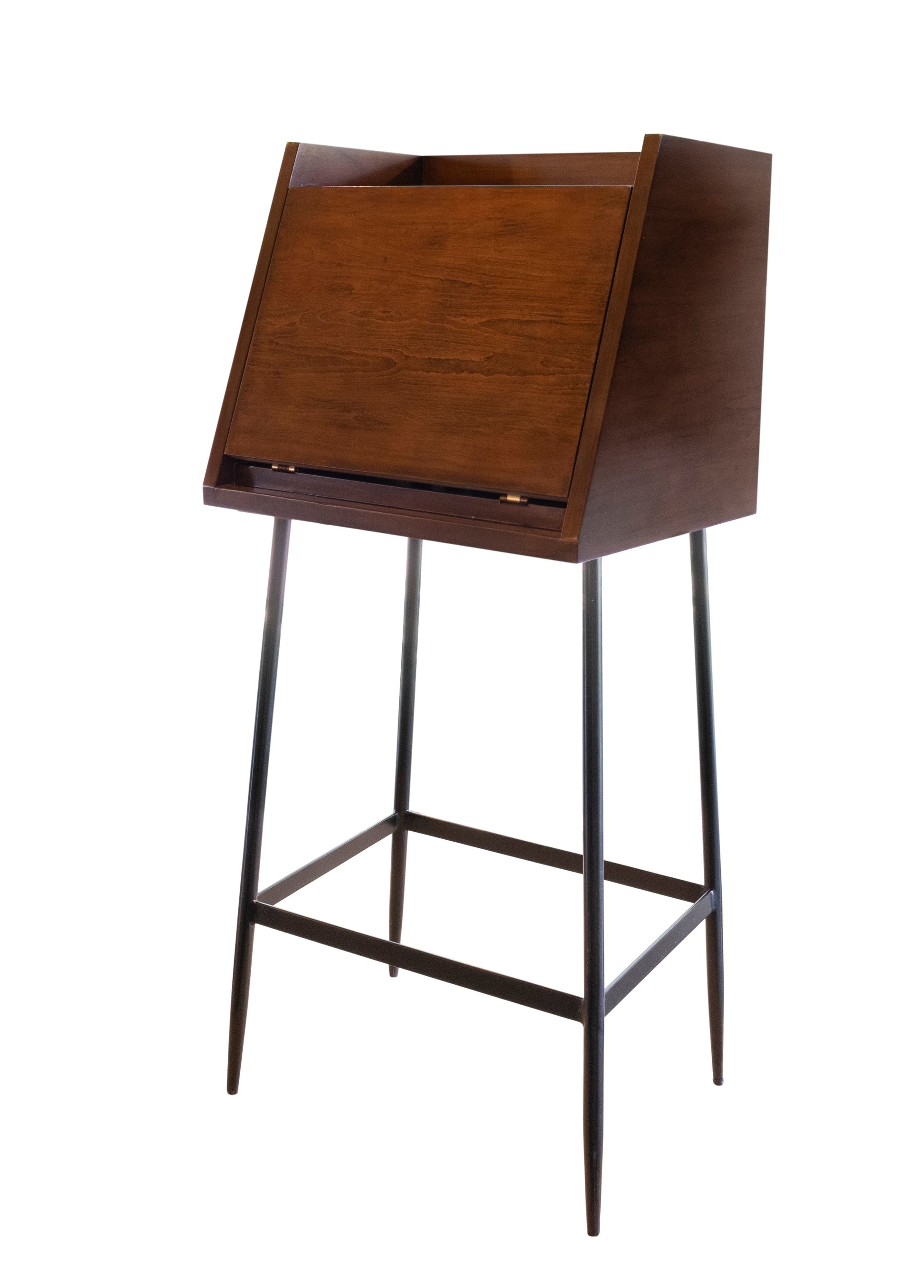 - Enhanced with pigeon holes and a fold-away top to keep your station tidy. Or pull it down for a bigger writing surface.