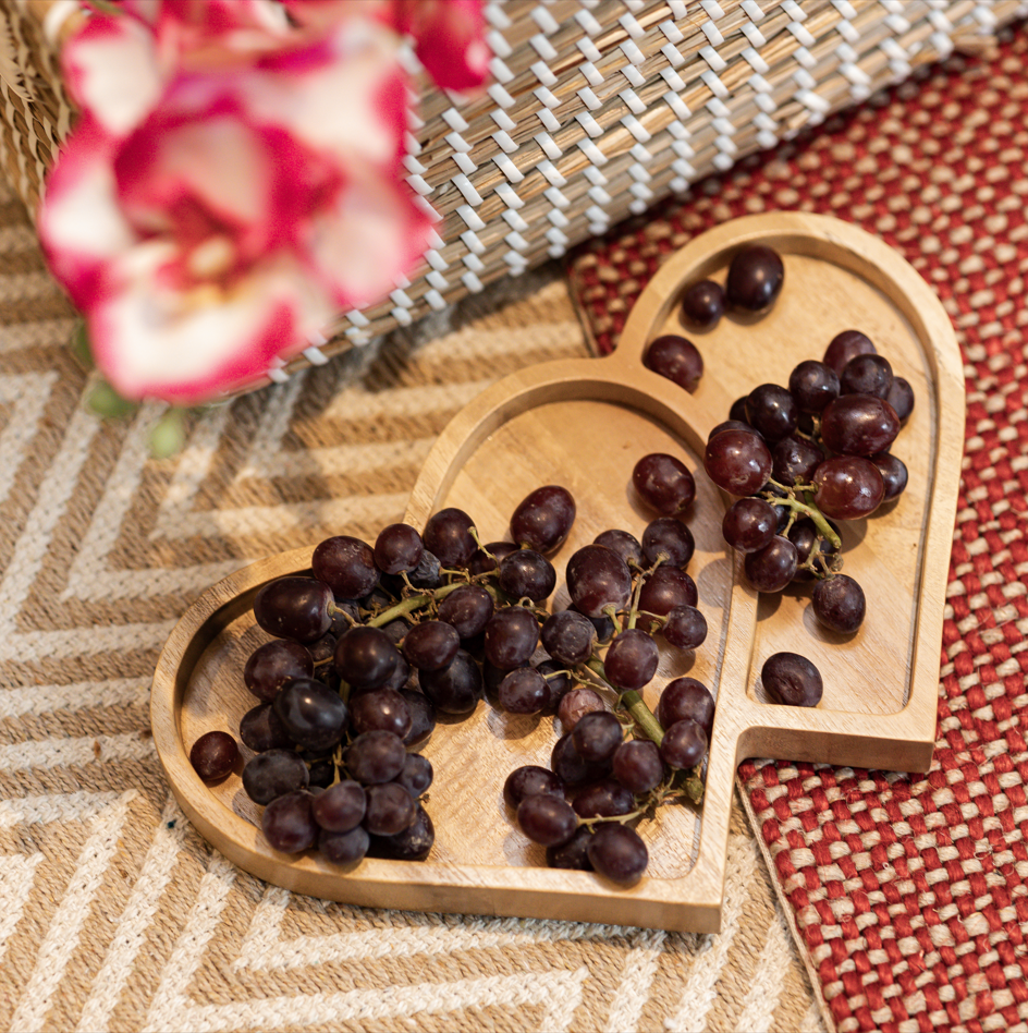 Serve up some love with this heart-shaped snack tray crafted from beautiful Gmelina solids - perfect for a romantic evening or a cozy night with friends.