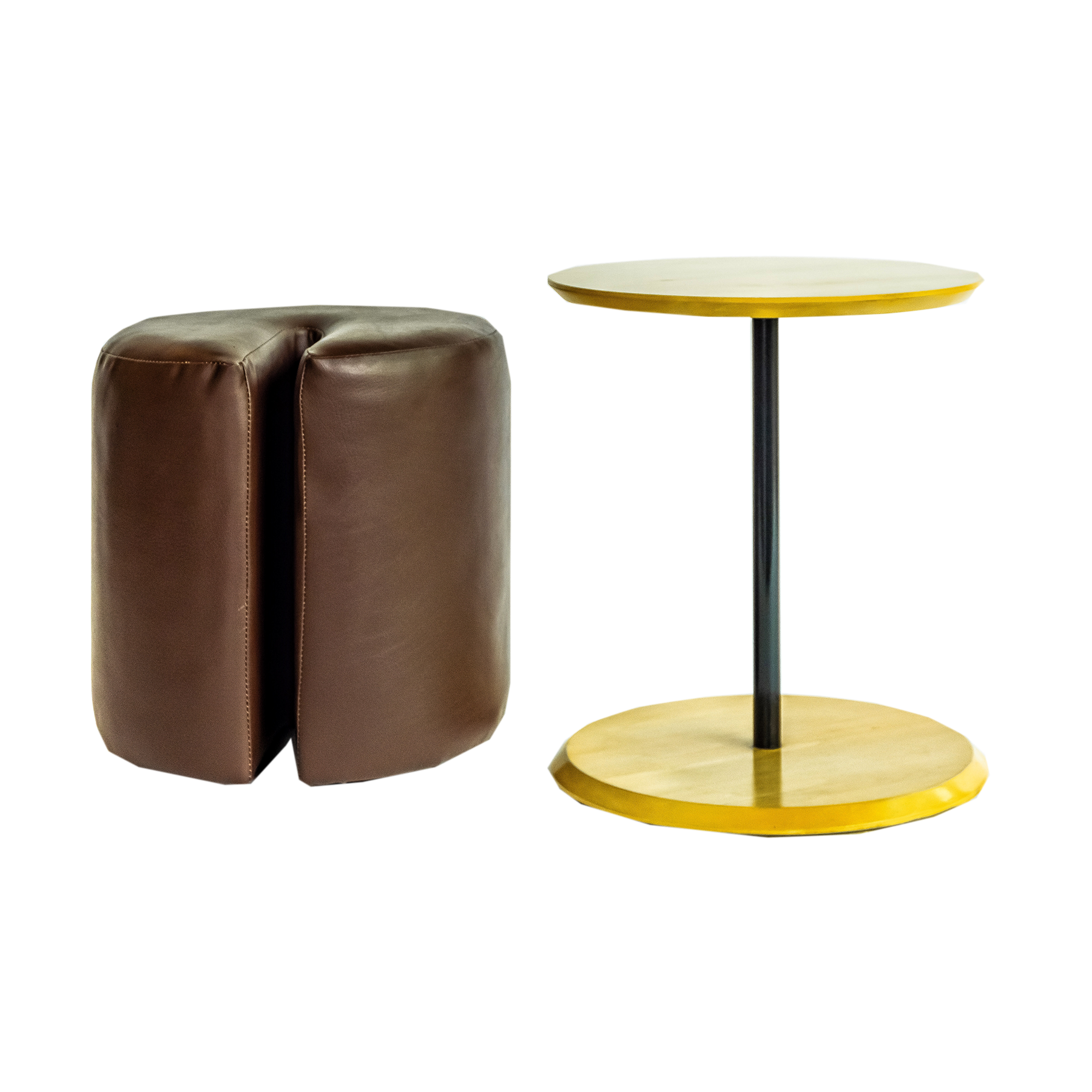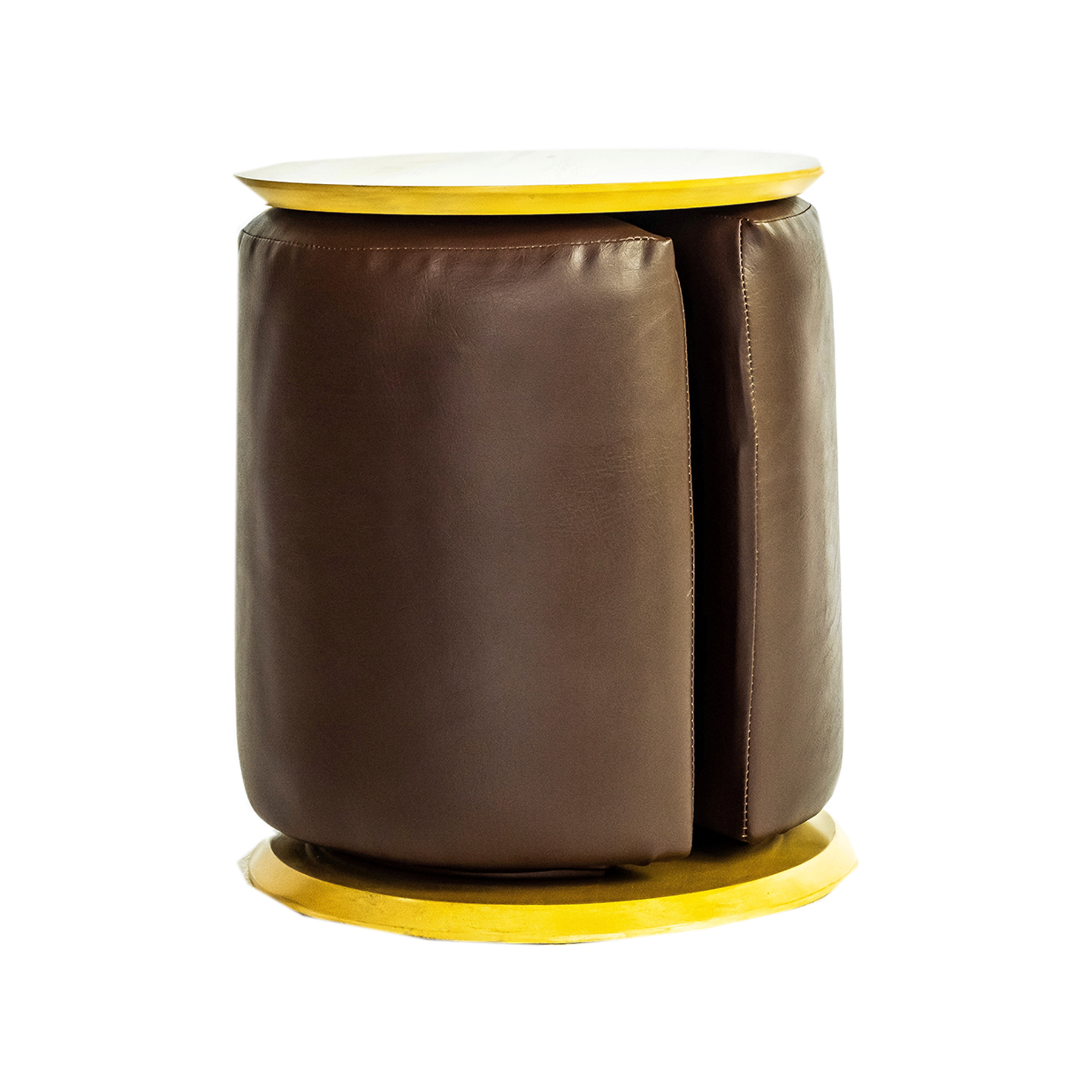 Maple Top and Base with Metal Stand, Leatherette Upholstered Seat in Deep Brown.